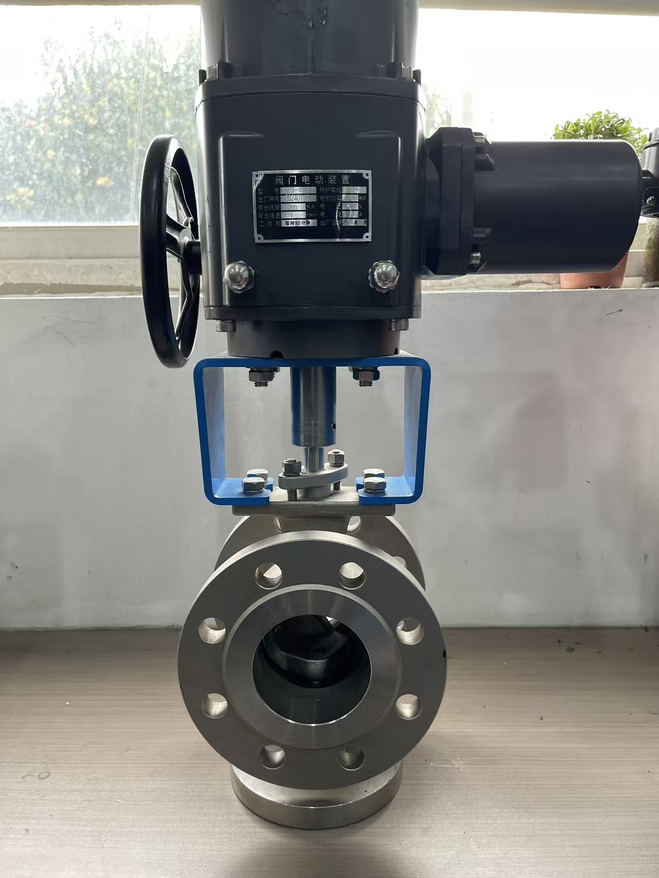 Equipped with an electric actuator (shown in the image) for automated control. It supports remote operation, rapid response to signals, and precise positioning. A manual handwheel backup ensures functionality during power failures or maintenance.