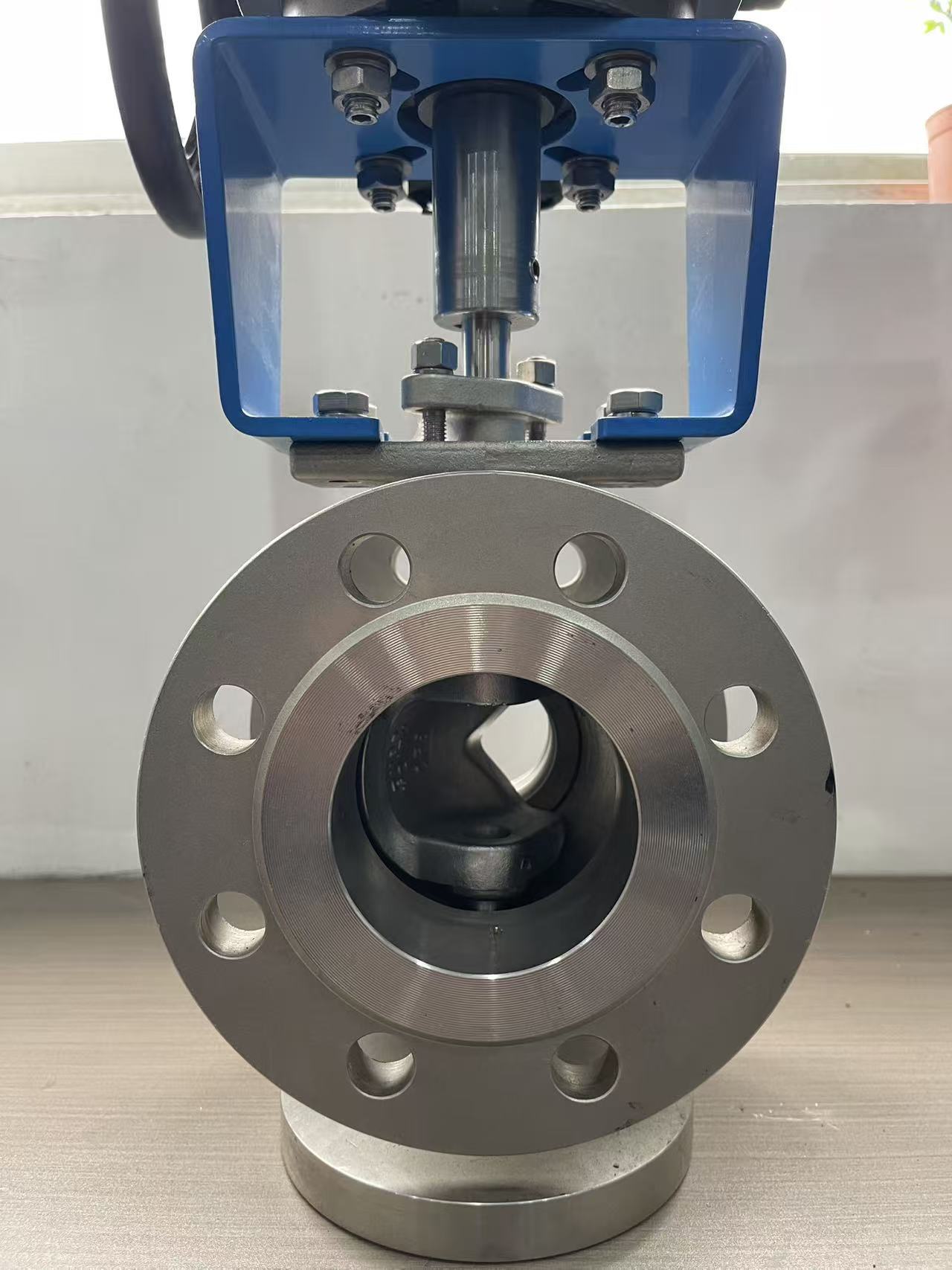 Features a V - shaped ball core and flanged connection. The V - port enables precise flow control (linear/proportional regulation), while flanges ensure stable pipeline integration. The valve body (stainless steel, visible in the image) resists corrosion, suitable for harsh media like chemicals, slurries.